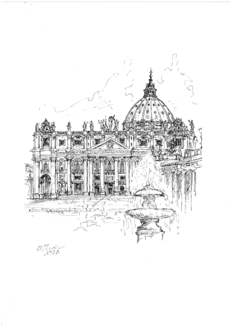 Petersdom in Rom - 1966 - Tuschezeichnug vor Ort,