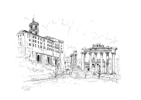 Forum Romanum in Rom - 1966 - Tuschezeichnung vor Ort,