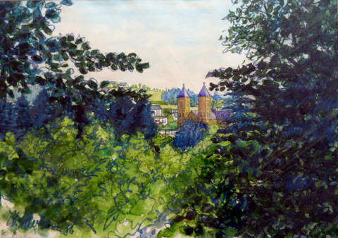 Mein Geburtsort Immekeppel/Overath - 1986 - Aquarell mit Stiften,
