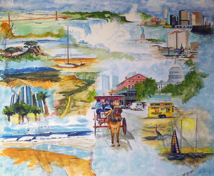 Acryl-Collagegemälde auf Leinwand von den USA-Reisen 1987/1990