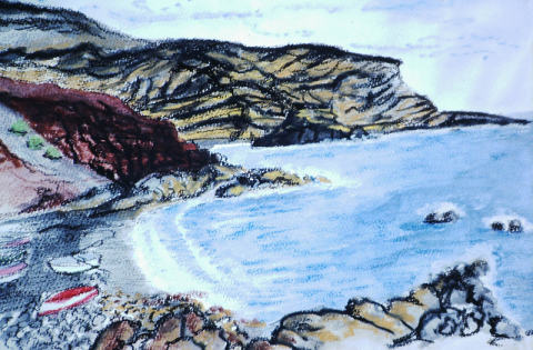 Lanzarote Bucht El Golfo - 1986 - Aquarell mit Stiften vor Ort,