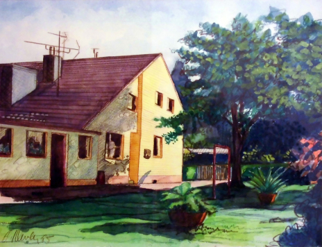 Geburtshaus meiner Frau - 1985- Aquarell mit Stiften vor Ort,