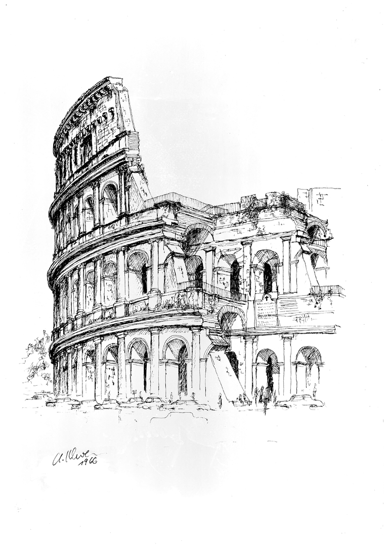 Colloseum in Rom - 1966 - Tuschezeichnung vor Ort,