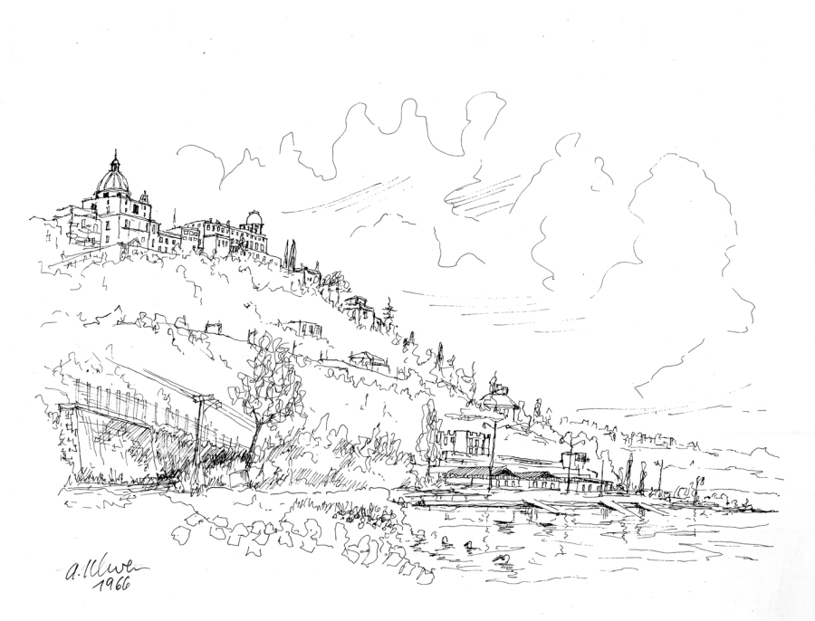 Castel Gandolfo in den Albaner Bergen - 1966 - Tuschezeichnung vor Ort,