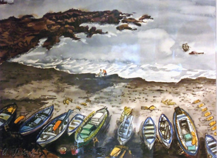 Fischerbucht auf Lanzarote - 1986 - Aquarell vor Ort,